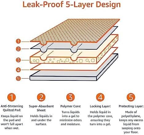 • 5-LAYER PROTECTION: Multi-layer construction with quick-dry surface and absorbent core that turns liquid into gel on contact