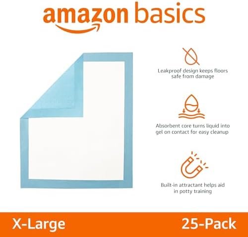 Feature | INCLUDES: 25 X-Large heavy-duty-absorbency puppy pee pads; ideal for puppy training, senior dogs, car trips, and more |