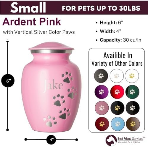 Best Friend Services Pet Urn for Dogs and Cats with Personalized Laser Engraving, Ottillie Paws Premier Series Memorial Urns (Small Ardent Pink with Vertical Pewter Paws) : Pet Supplies