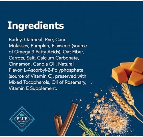 - MADE with PUMPKIN: BLUE Health Bars dog treats prove that a healthy treat can be tasty, too; with ingredients like oatmeal, pumpkin, and cinnamon, these bars feature the ingredients you’ll be proud to feed your furry family members