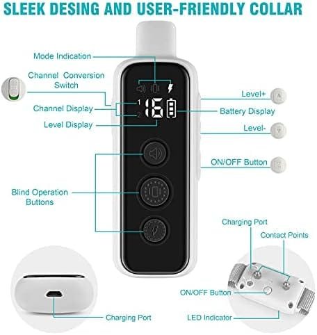 Feature | Perfect for Training, Simple and Effective:Our electric shock collar is designed with 3 extremely efficient harmless modes : beep(standard), vibration(standard), safe shock (adjustable 1-16 levels), which can help you train your dog behave well |