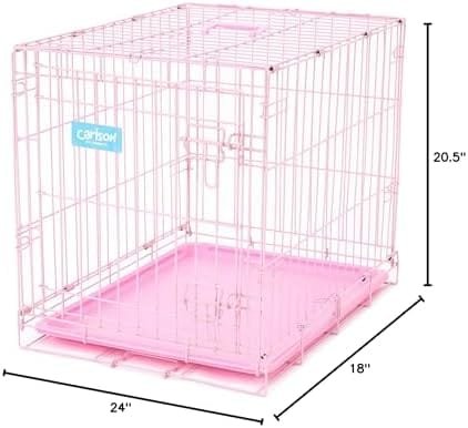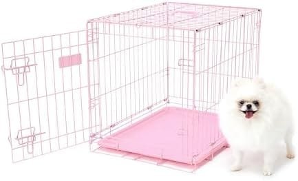 Give your pet a place to feel secure and safe with our Pink Deluxe Compact Single Door Dog Crate, Small. This crate is constructed of all steel making it dog-tough, highly durable and secure. The Compact crate features a single door with secure bolt locking system to ensure your pets safety. Includes a pink removable and washable composite pan. Quick and easy to set up with no tools required. The Compact crate folds flat and locks in place for complete portability or storage. Perfect for car travel or on the go. For indoor and outdoor use. Great tool for house training. This Compact Crate is ideal for small and toy breeds or puppies. Assembled crate dimensions 24-inches long by 18-inches wide by 19-inches tall.