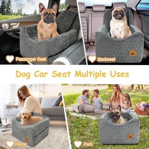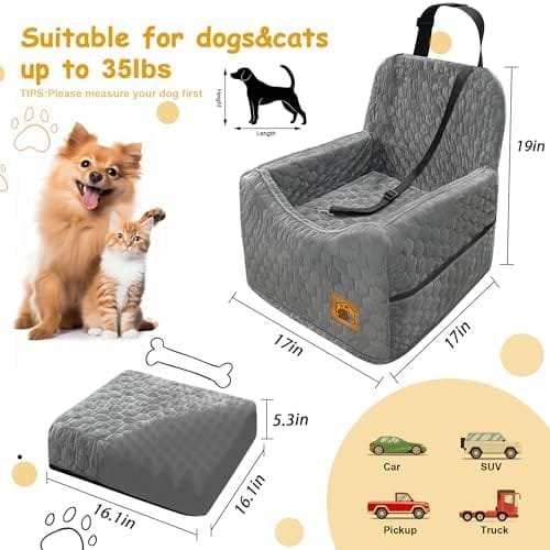 - 【Optimal Size】: This dog car seat measures 17 in (L) X 17 in (W) X 19 in (H), providing ample space for up to two small puppies or one medium-sized dog weighing under 35 lbs. Suitable for breeds like Yorkshire Terriers, Chihuahuas, Pomeranians, Dachshunds, Shih Tzus, cats, puppies, and more. Refer to the provided picture for specific size details.