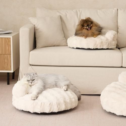 EHEYCIGA Small Dog Bed and Cat Couch for Puppy and Kitten – Fluffy Faux Rabbit Fur Pet Sofa with Washable Removable Cover, Waterproof and Non-Slip, 23 Inch Cream : Pet Supplies