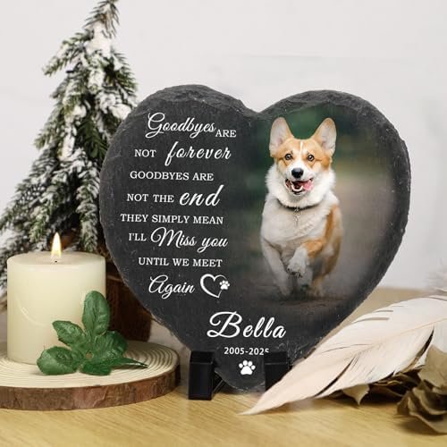 - Personalized Pet Memorial Keepsake:Honor your beloved friend with our custom heart pet memorial stones. Engrave your pet’s photo,name and the date. This sympathy gift for cats and dogs will make the memories last forever. The 6in *6in size is perfect for a shelf or table, while the 8in *8 in makes a striking garden memorial.