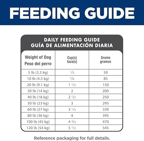 Directions | Daily Feeding Guide (1 cup = 8 oz): Feed your dog 3/8 to 5/8 cup per 5 pounds of body weight per day; 2/3 to 1 cup per 10 pounds of body weight per day; 1-1/4 to 1-2/3 cups per 20 pounds of body weight per day; 2 to 2-3/4 cups per 40 pounds of body weight per day; 2-2/3 to 3-3/4 cups per 60 pounds of body weight per day; 3-1/3 to 4-2/3 cups per 80 pounds of body weight per day; 4 to 5-1/2 cups per 100 pounds of body weight per day. Helpful Tips: The above ranges are a starting point only. Your pet may need less or more food to maintain proper weight. Adjust as needed. If you are unsure, ask your veterinarian. Store in a cool, dry place. Keep fresh water available at all times. Feeding this food for the first time? Mix increasing amounts of your pet’s new food with decreasing amounts of the old food over a 7-day period. |