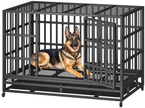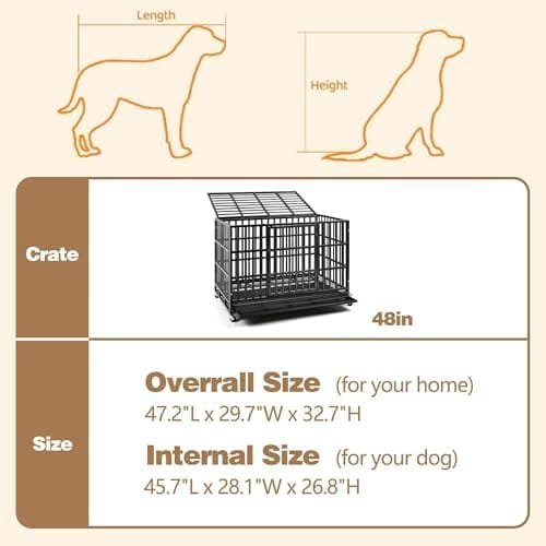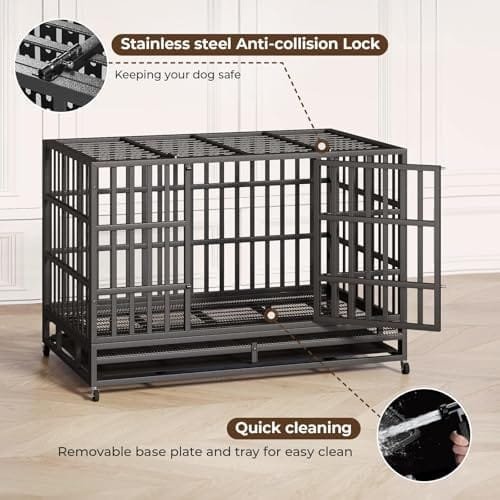 - 🐾【Durable Dog Crate】:The 48″ upgraded dog cage is indestructible.It is made of corrosion-resistant and reinforced 0.79 inch diameter steel tubes.Multi-layered protective non-toxic coating keeps your dog healthy,suitable for most medium and large dogs