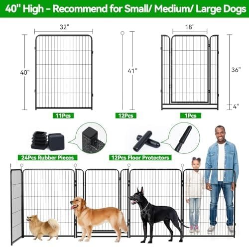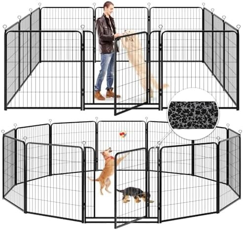 Feature | 【Safe Enclosed & Expandable Area】The heavy-duty dog pen is sturdy and durable, pet fence provides a safe enclosed area for your pups play, run around and get the exercise they need, each panel is separate, which can be combined repeatedly for larger square footage, this temp fencing makes potty and house training much easier |