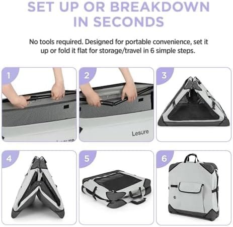 Feature | Portable and Lightweight: The sturdy yet lightweight frame and fabric make this Large dog crate for car the perfect traveling home for your pooch. This indoor and outdoor dog kennel is equipped with a carrying handle and side pockets to conveniently store treats, leashes, waste bags, and other essentials.It even includes an elastic strap for a water bottle for dogs. |