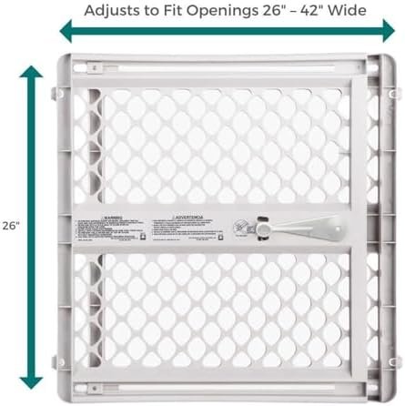 - [Stylish and Dependable]: Comes in an appealing gray finish and fits seamlessly in any of your standard openings. The durable, American-made plastic gate is sturdy and hard to climb! Perfect as a puppy gate or cat gate for doorway use.