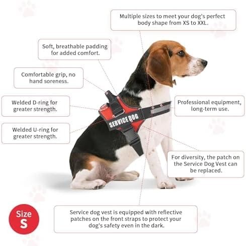 Feature | Service Dog Vest Small: The service dog vest small not only allows your service dog to accompany you on daily walks and outdoor activities, but can also be your service dog training course equipment, so that your service dog can reach the best condition. |