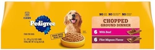 - Quality Recipe: Pedigree Chopped Ground Dinner Wet Dog Food Filet Mignon & Beef Variety Pack is made with no added sugar, high fructose corn syrup, or artificial flavors