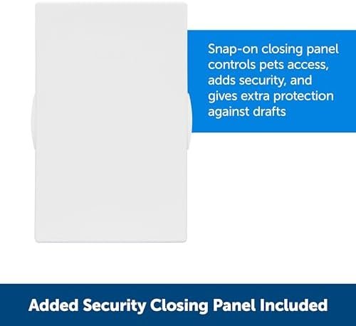 - Secure & Versatile Design: For peace of mind, choose when your pet comes and goes with the included lockable slide panel; medium flap size has dimensions 8 1/4″ W x 12 1/4″ H for pets up to 40 lb