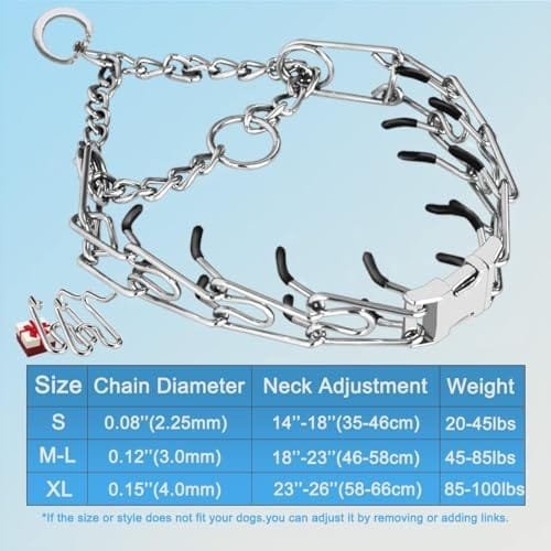 Feature | 【For All Sizes of Breed】: whether your pet is a Pitbull, a German Shepherd, a Beagle , or a Bulldog, our collar is suitable for all size of breed, the package comes with 2 links, it is convenient for any adjustment, Multiple different size meets your different needs, suitable for small, medium, large and extra-large dogs. |