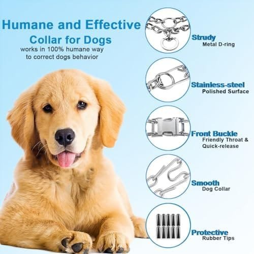 Feature | 【Quick Friendy Front Bukle】: This unique Safiman Dog training Collar shas a custom-designed front quick release buckle is friendly to your dog and make securing removing the leash from your dog a breeze! 8 collar links placed directionally around the collar ensure you will get your dog’s attention no matter the angle. |