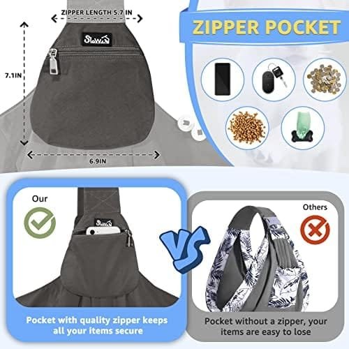Feature | Zipped Pocket — There is a front pocket for your personal stuff, such as treats, poo bags, your wallet, cell phone or keys. According to the comfort, you can choose any shoulder to take bag. Slowton Pet Carrier is durable and MACHINE washable. |