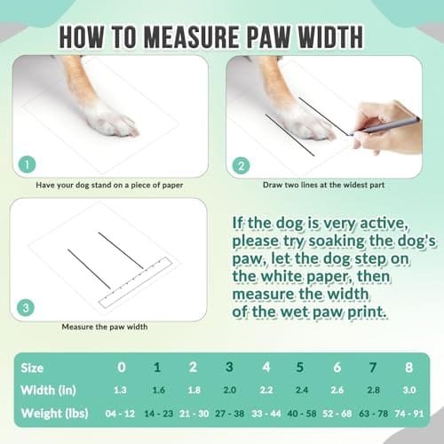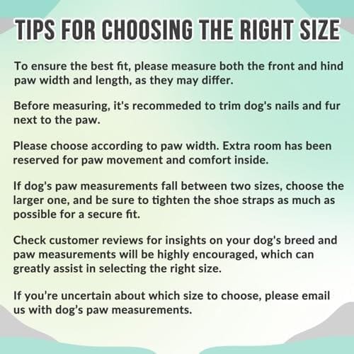 After you know the measurements of your dog’s paw width and length, you can choose a size that covers both your dog’s paw width and length from the size chart. If between two sizes, choose the large one.
