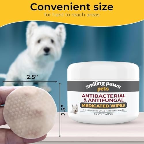 - PERFECTLY SIZED: These chlorhexidine wipes for dogs and cats are wet, small (2.5”x2.5”) and thin enough to fit every crevice such as paws without discomfort. Perfect for hot spot treatment for dogs paws and bacterial, fungal, and yeast infections.
