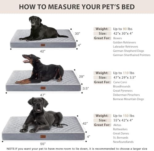 - 【Extra Large Dog Bed Size】42 x 30 x 4 inches, Suitable for dogs weighing less than 90 pounds, including medium and large breeds. The large dog bed is shipped in a vacuum-sealed box, and it’s recommended to leave it in the air for approximately six hours after opening to allow it to fully expand and regain its shape.